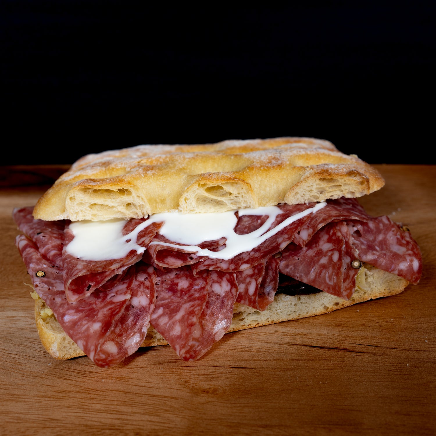 artichoke crema, finocchiona salami, whipped pecorino, marinated roasted eggplant