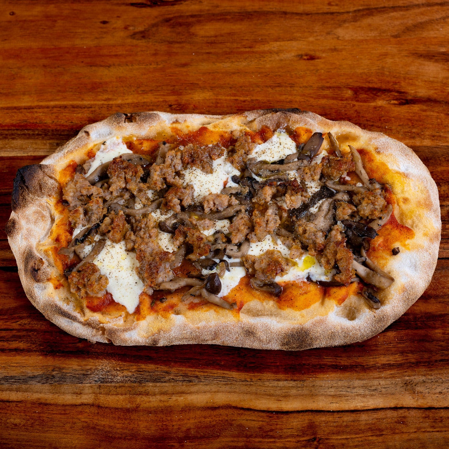 san marzano, fior di latte, italian sausage, porcini mushrooms