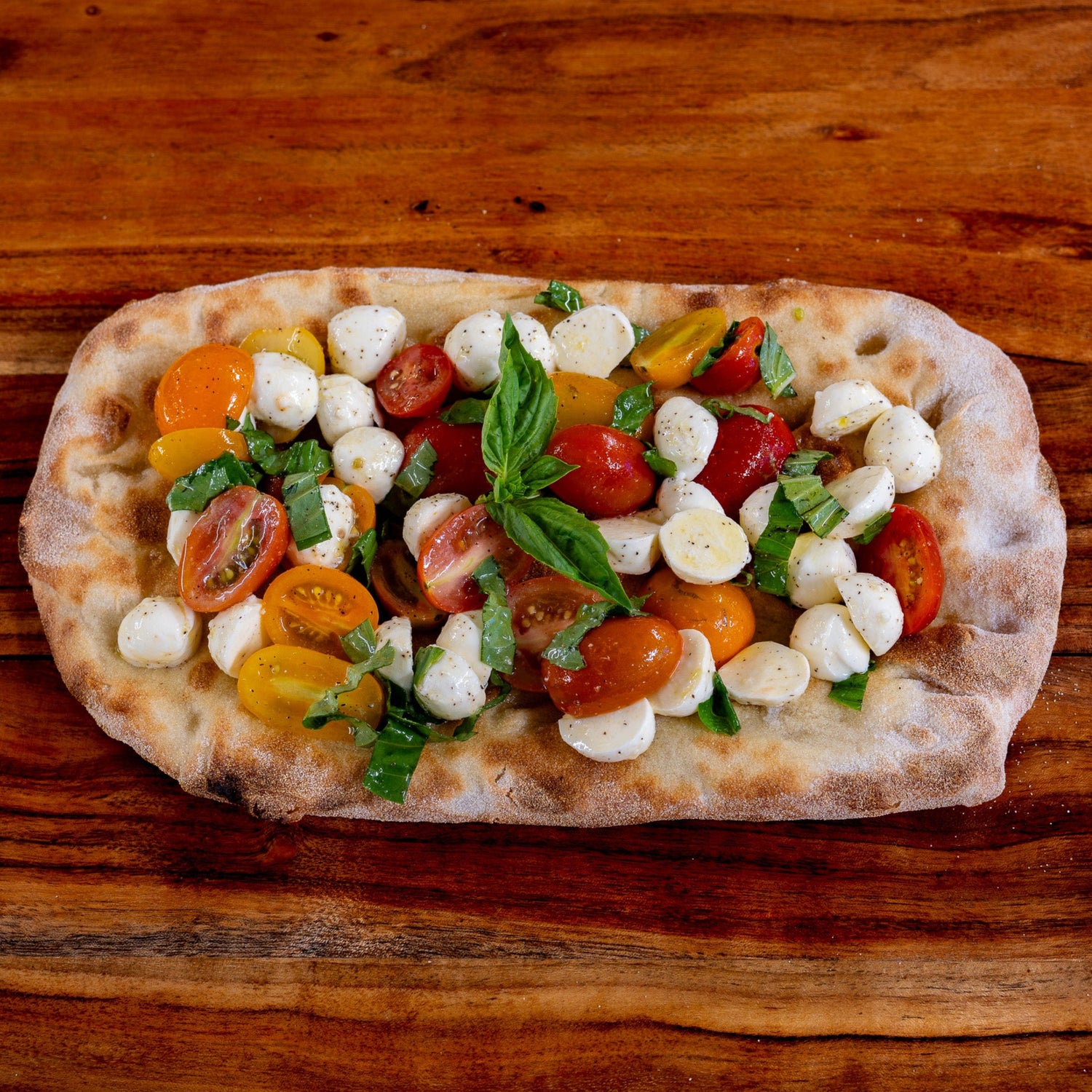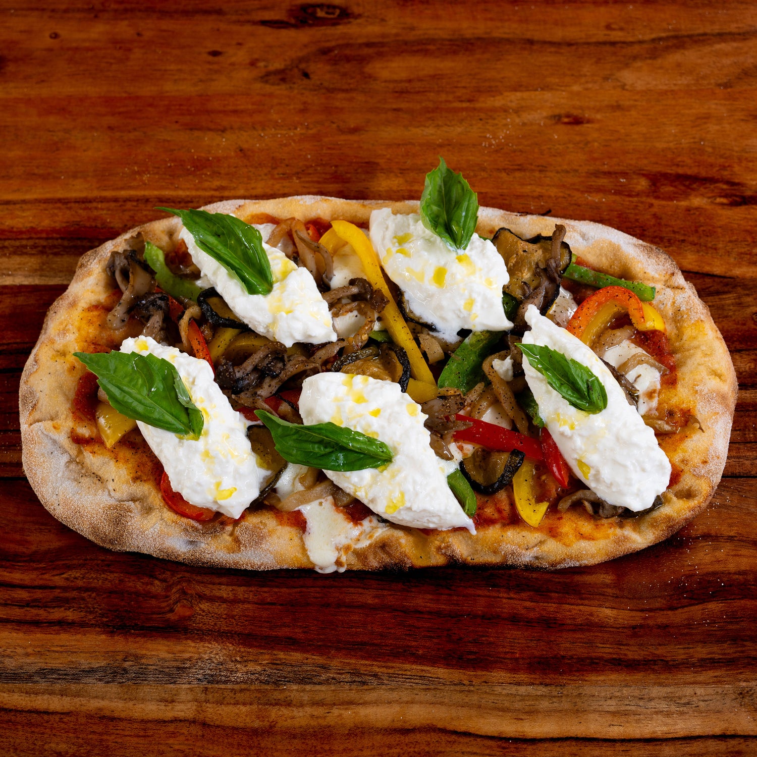 san marzano, burrata, cherry tomatoes, porcini mushrooms, eggplants, bell peppers, zucchini,