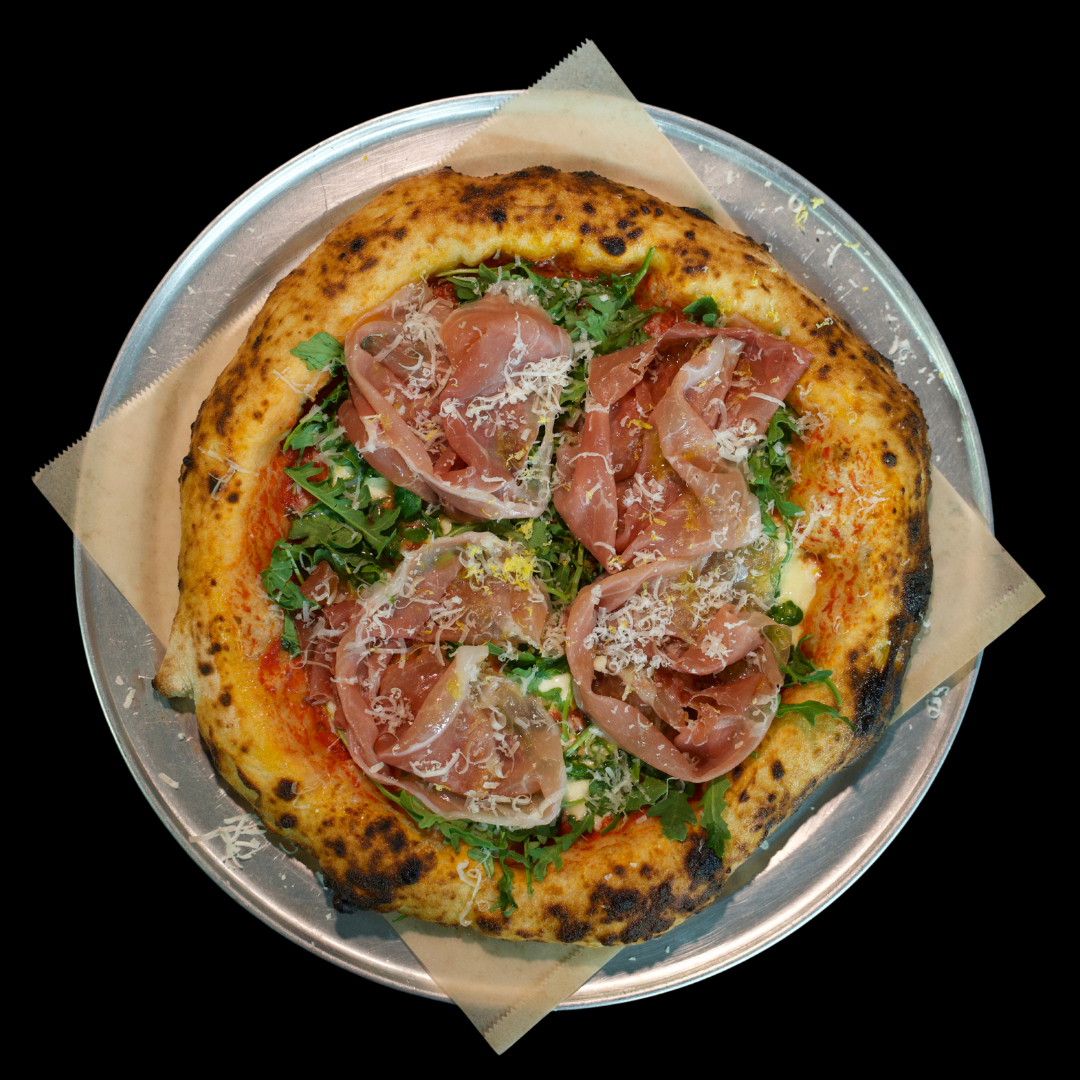San Marzano Tomato Sauce, Fior di Latte Mozzarella, Arugula, Prosciutto di Parma and Lemon Zest