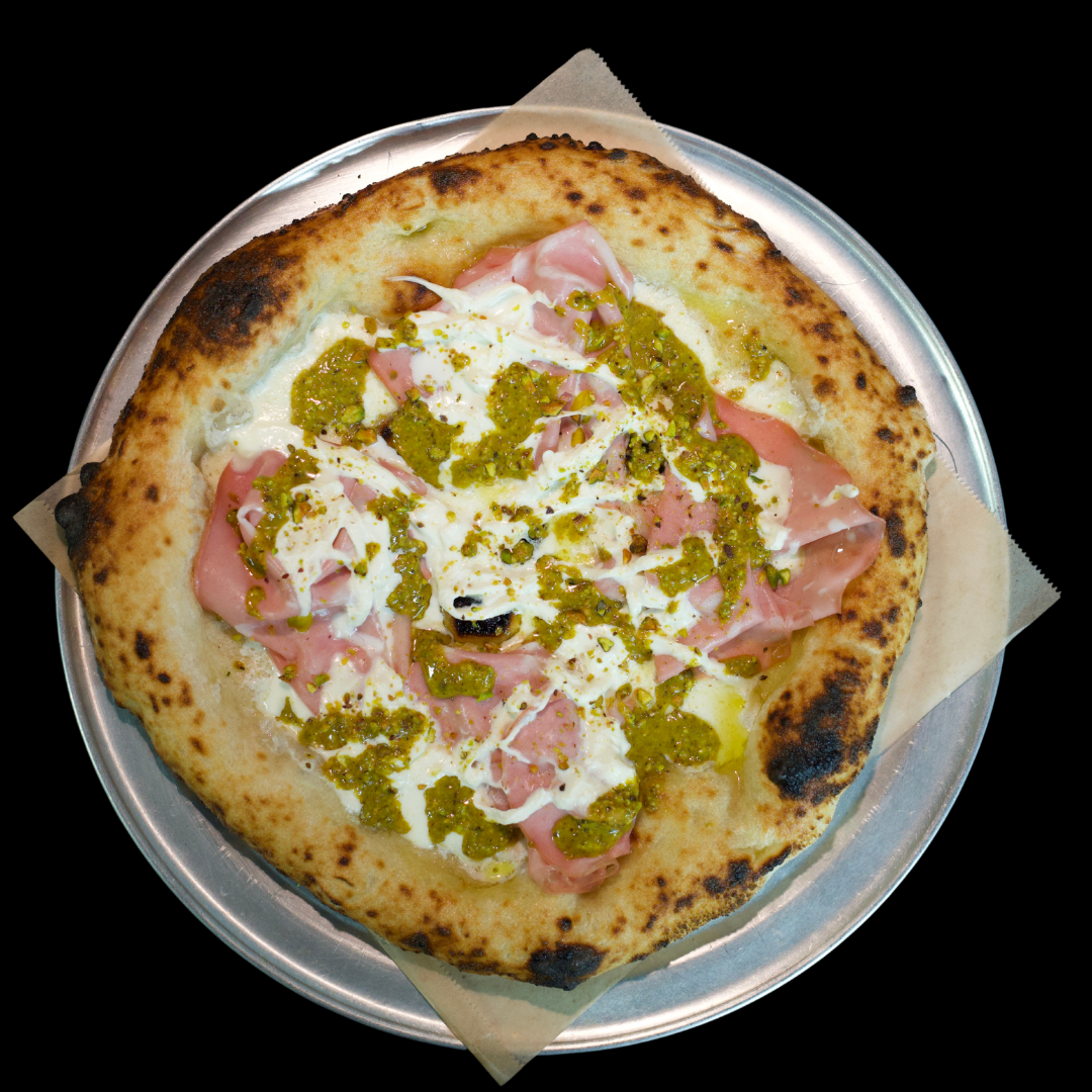 Pistachio Crema, Mortadella, Fresh Stracciatella and Pistachio Crumble